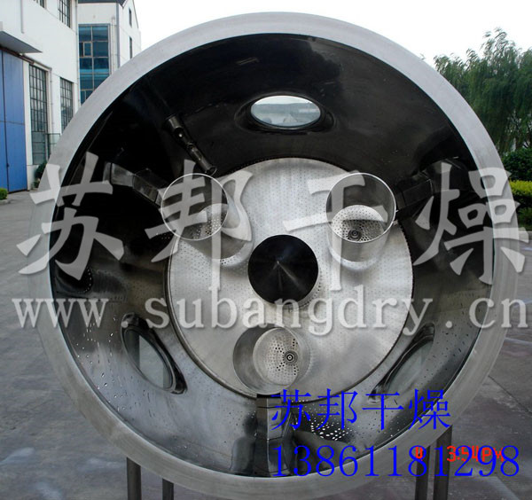 底噴流化床包衣機是將噴霧技術與流態化包衣技術結合為一體的顆粒粉體包衣設備,底噴流態化,物料具有規則‘環形’的運行軌跡,因而可獲得均勻、連續的膜衣。